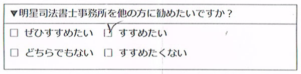 「家の名義変更のお願いをしました。すばやく対応してくれて助かりました。
